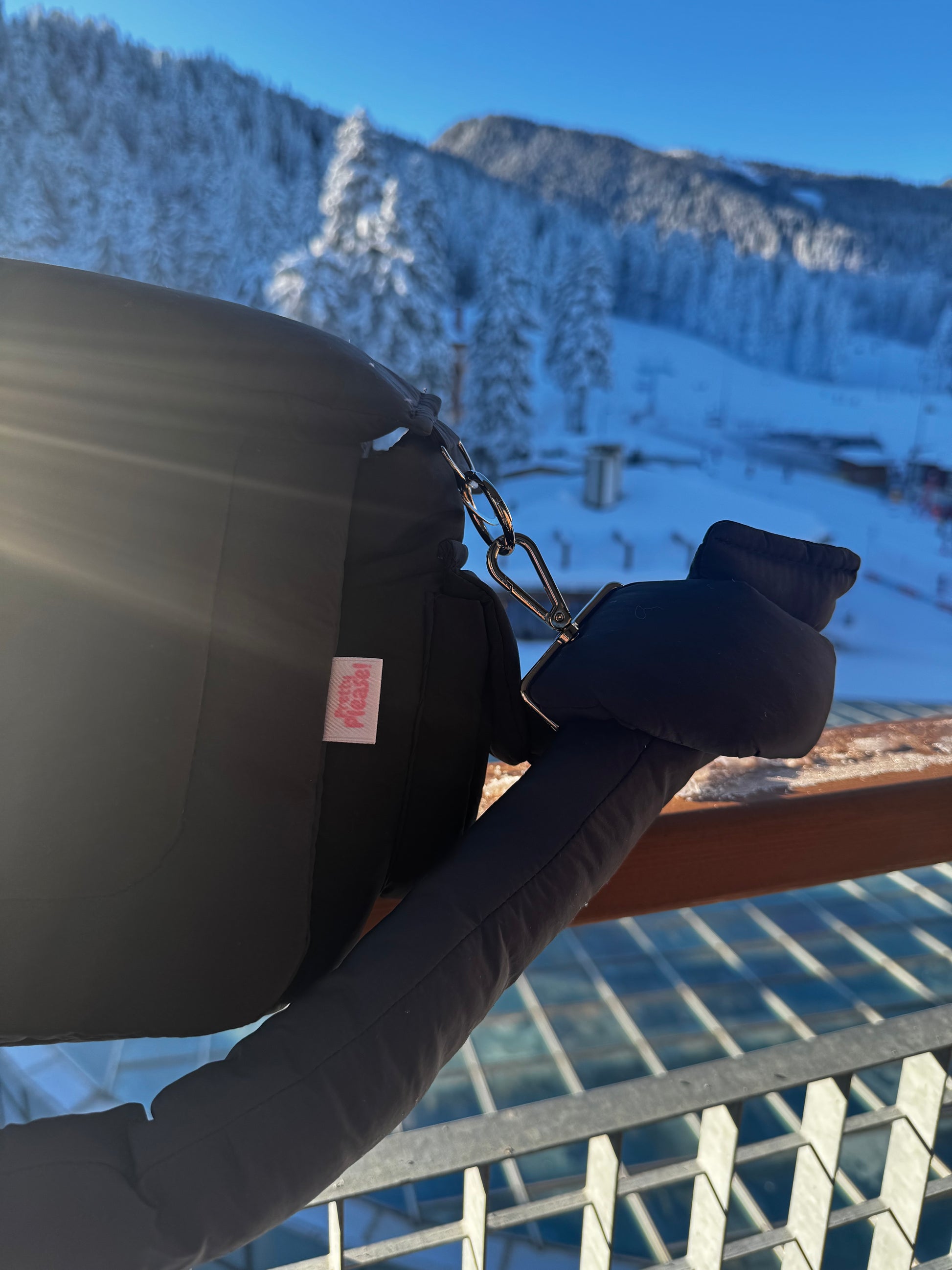 The Bestie Bag Mini is the smaller version of our iconic padded bag — soft, stylish, and made for everyday adventures. Designed from water-repellent fabric with a cloud-like texture that keeps its shape and protects your essentials.